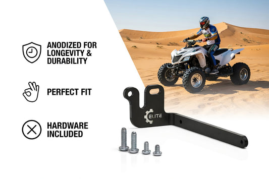 ATV License Plate Mount for Yamaha YFZ450 / YFZ450R (2004–2026) & Raptor 660 / 700 (2001–2026), Rear Frame 4x7 License Plate Bracket, Anodized Aluminum – Elite Engineering